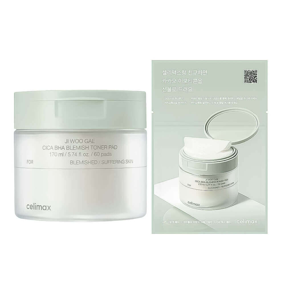CELIMAX Ji Woo Gae Cica BHA Blemish Toner Pad, 60шт