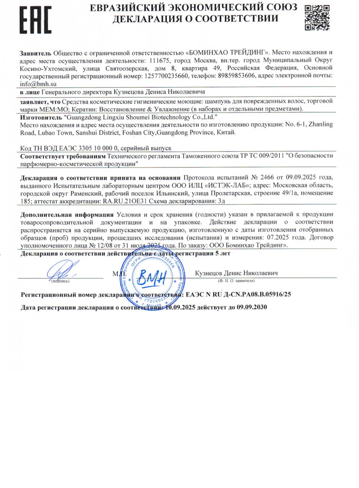 • Шампунь МЕМ:МО «Кератин: Восстановление & Увлажнение» — 1 шт.